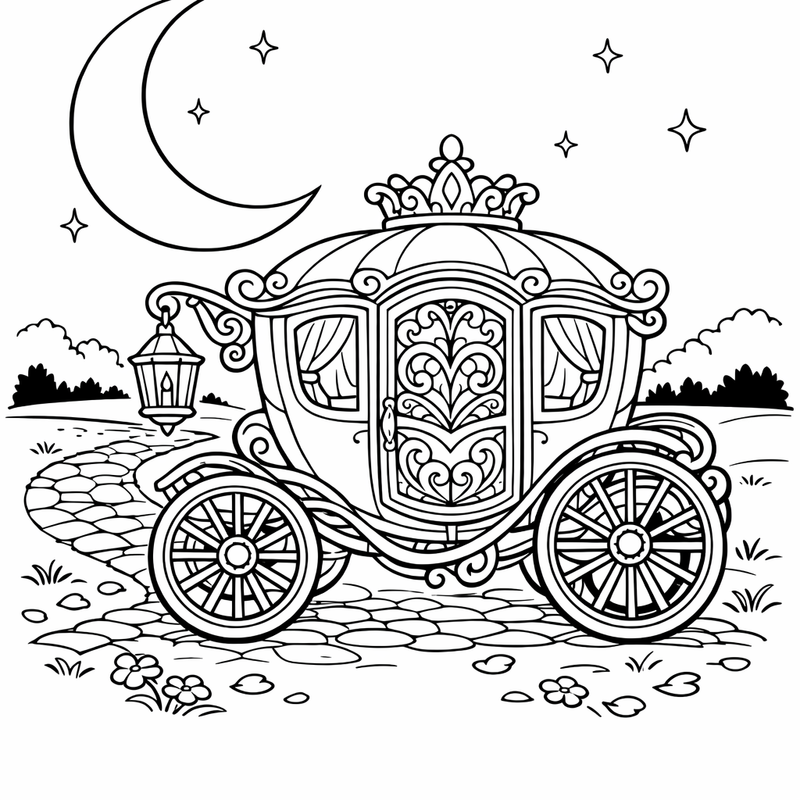 Carriage Coloring Page — Carriage And Moon