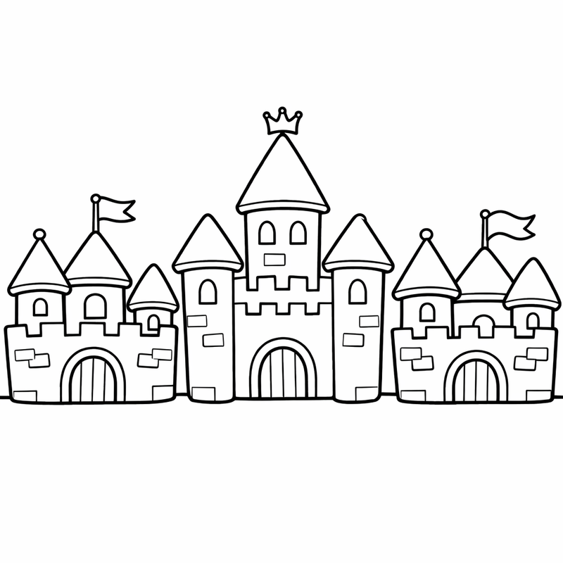 Free printable castle coloring page for kids. Object Only: A Cute Castle With Clean Outlines, No Background. Print in one click, Level: beginner.