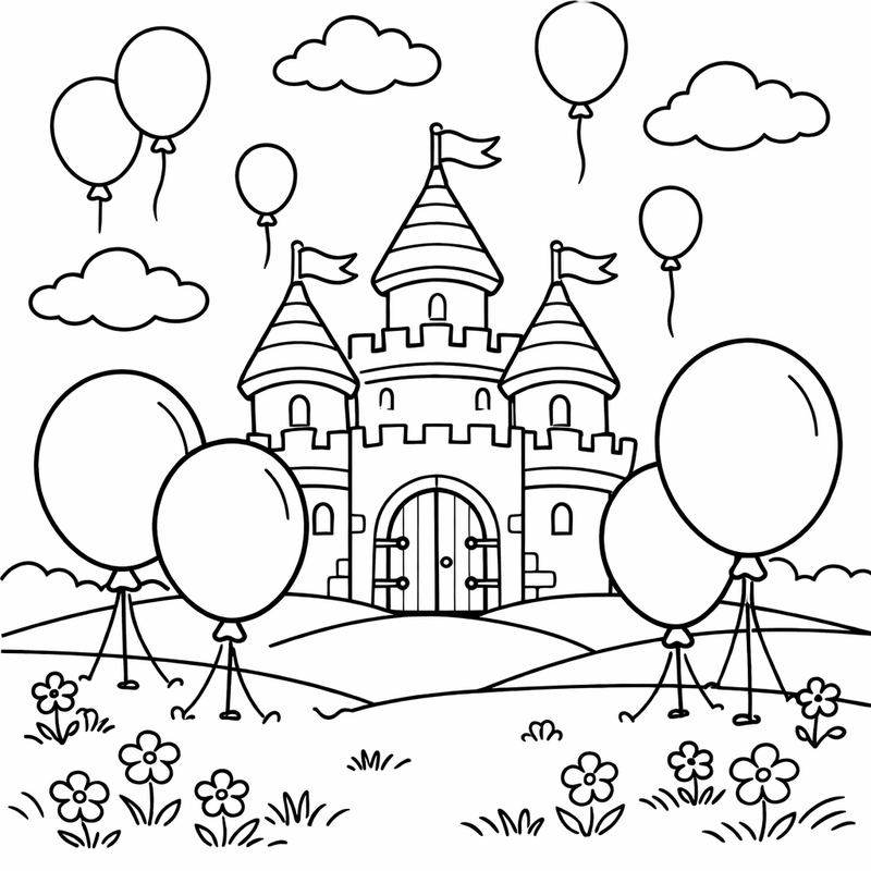 Fairy Tale Castle Coloring Page — Object Only: A Fairy Tale Castle With Towers, No Background