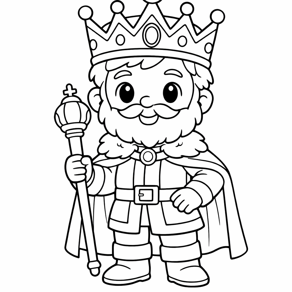 King Coloring Page — Object Only: A Cute King With Clean Outlines, No Background