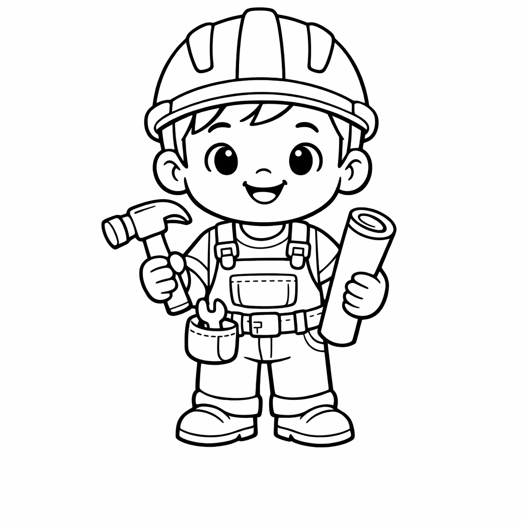 Construction Worker Coloring Page — In A Cozy Indoor Workshop, A Bespectacled Construction…