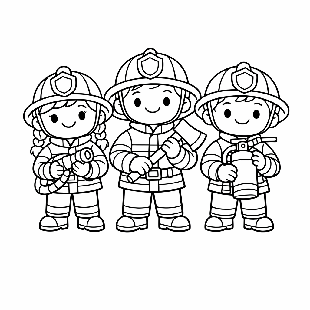 Firefighter Coloring Page — A Firefighter Trains With A Group Of Friendly…