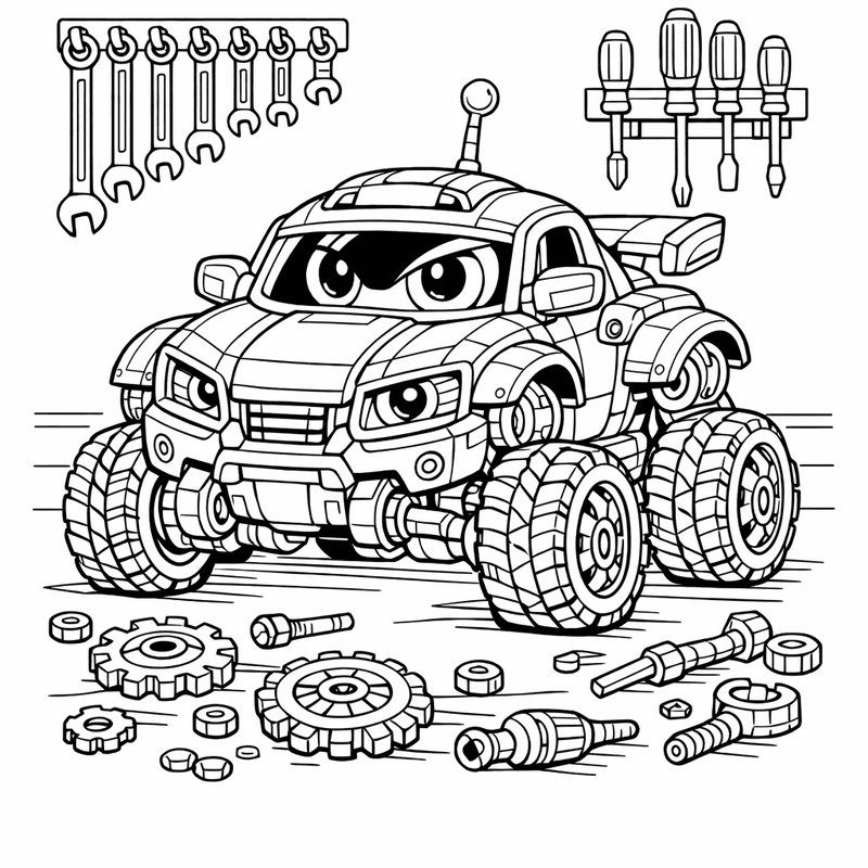Free printable robot car coloring page for kids. Object Only: Two Or Three Robot Cars Side By Side, Simple And Adorable, No Background. Print in one click, Level: beginner.
