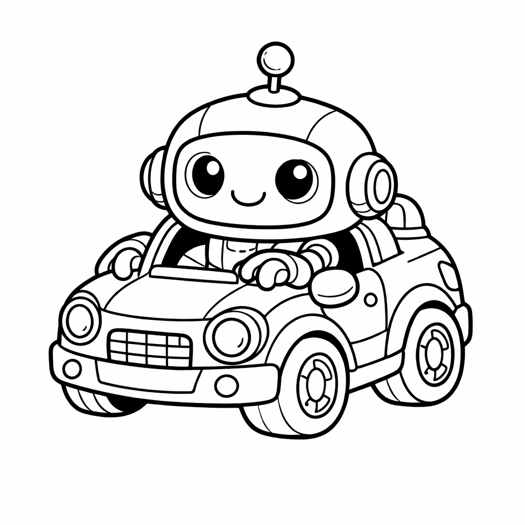Free printable robot car coloring page for kids. Robot Car Resting In A Garage Surrounded By…. Print in one click, Level: beginner.