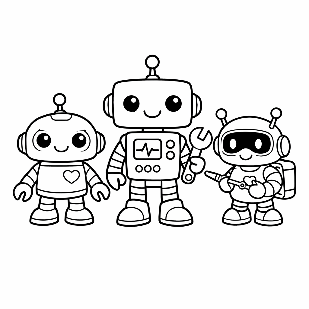 Friendly Robot Coloring Page — Object Only: Two Or Three Friendly Robots Side…