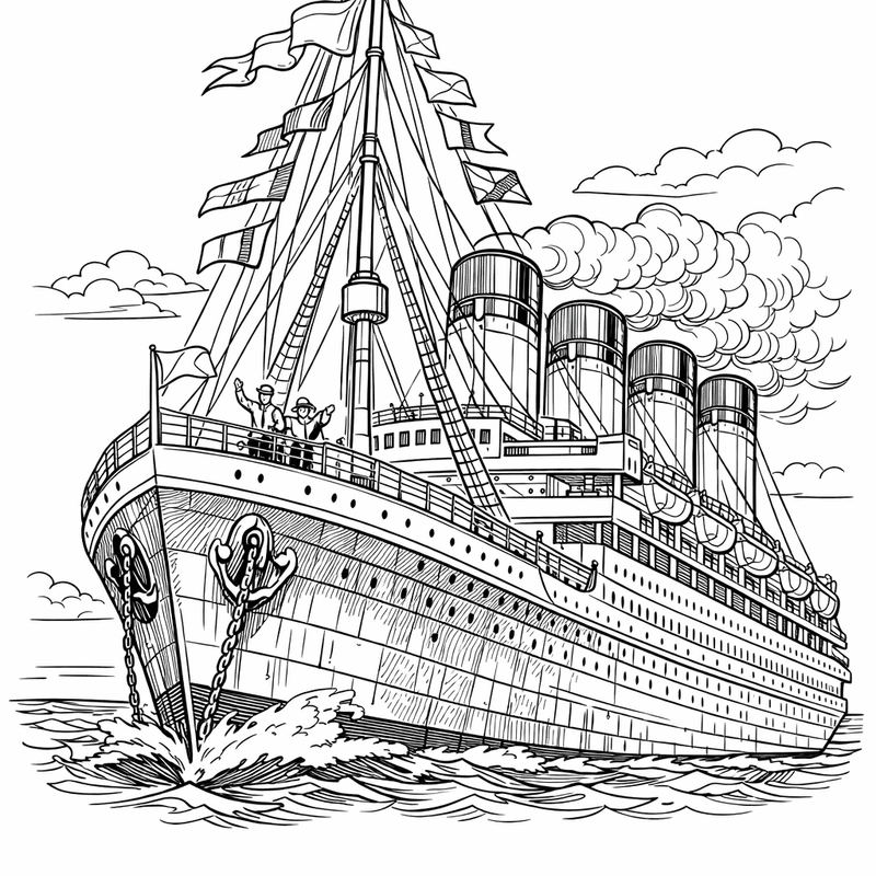 Titanic Coloring Page — Object Only: A Cute Titanic With Clean Outlines, No Background