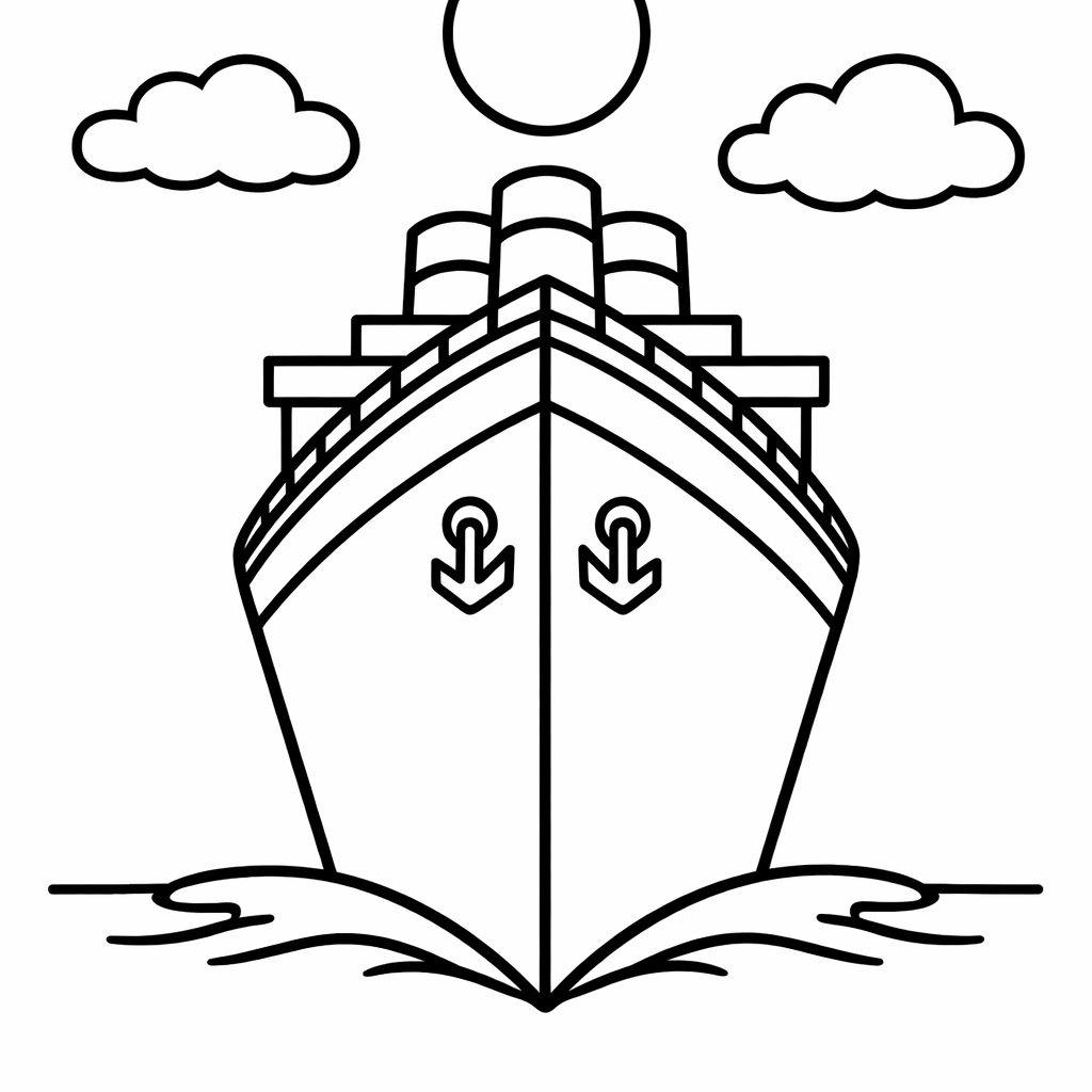 Titanic Coloring Page — Object Only: A Cute Titanic With Clean Outlines,…