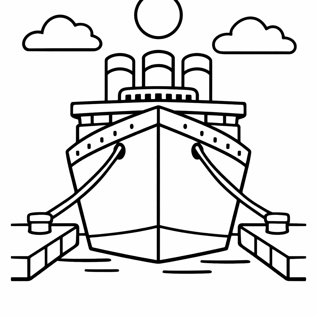 Titanic Coloring Page — Object Only: A Cute Titanic With Clean Outlines,…
