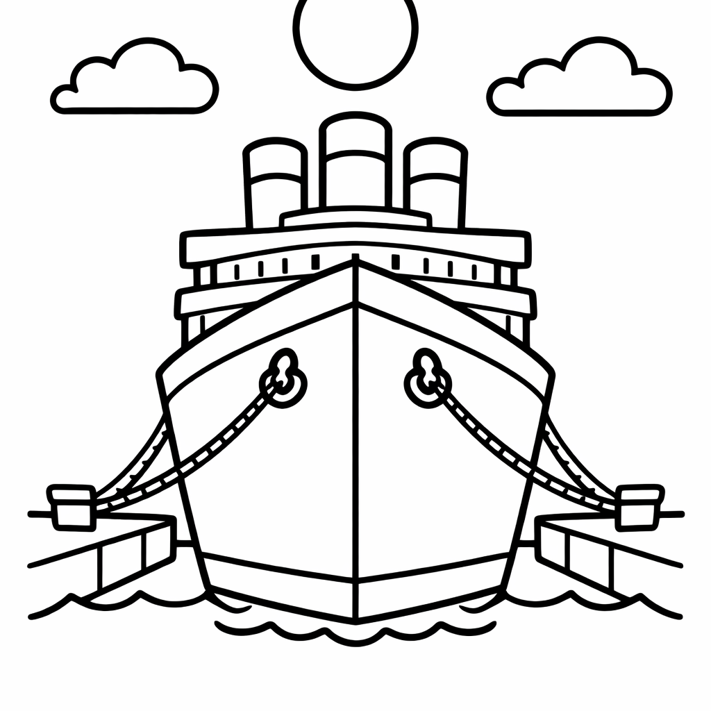 Titanic Coloring Page — Object Only: A Cute Titanic With Clean Outlines,…