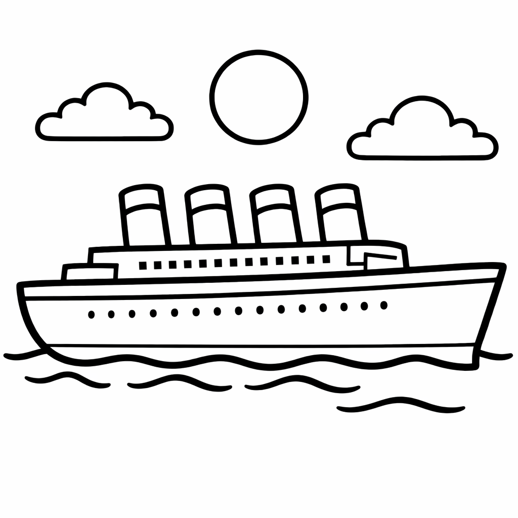 Titanic Coloring Page — Object Only: A Cute Titanic With Clean Outlines,…