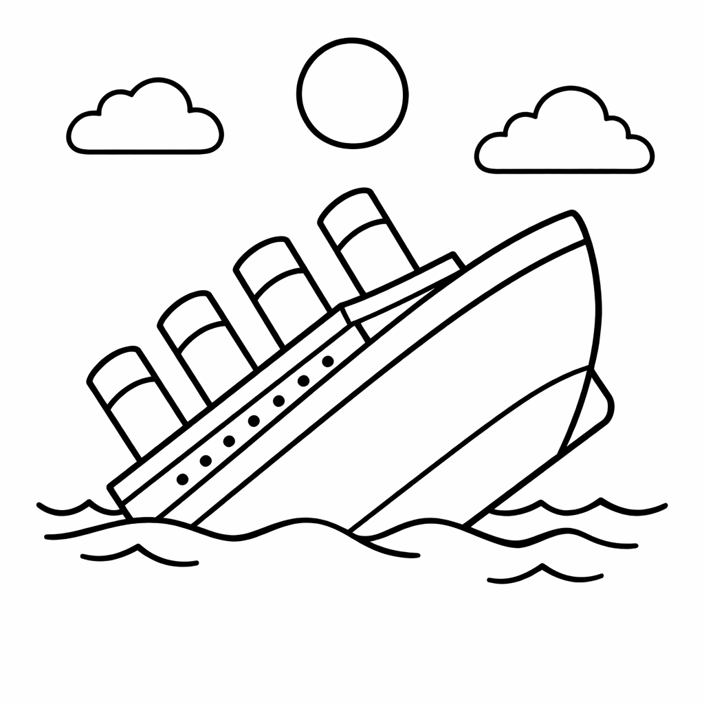 Titanic Coloring Page — Object Only: A Cute Titanic With Clean Outlines,…