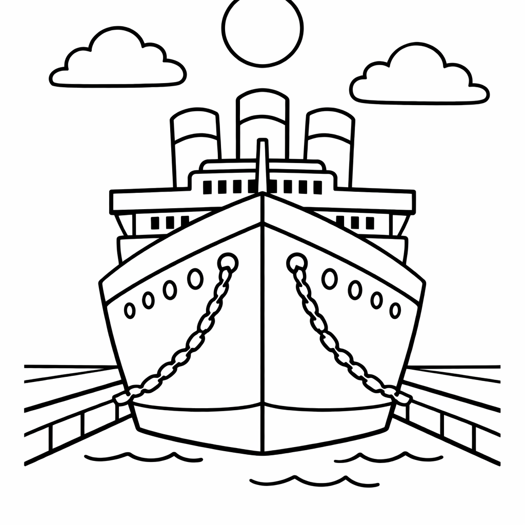 Titanic Coloring Page — Object Only: A Cute Titanic With Clean Outlines,…