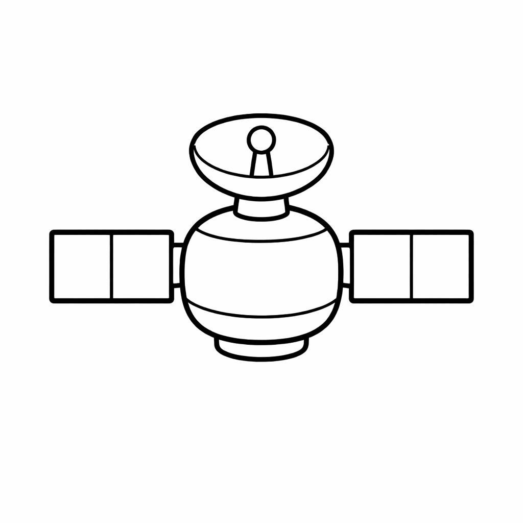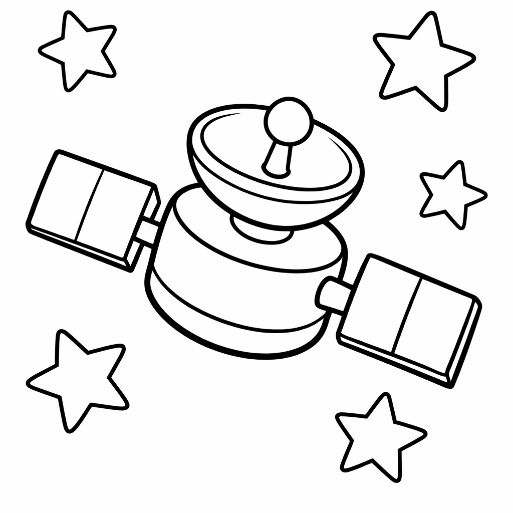 Free printable satellite coloring page for kids. In A Whimsical Forest, A Cheerful Satellite Dangles From A Giant Tree Branch, Surrounded By Curious Woodland Creatures Peeking Out From Behind The Trunks.. Print in one click, Level: beginner.