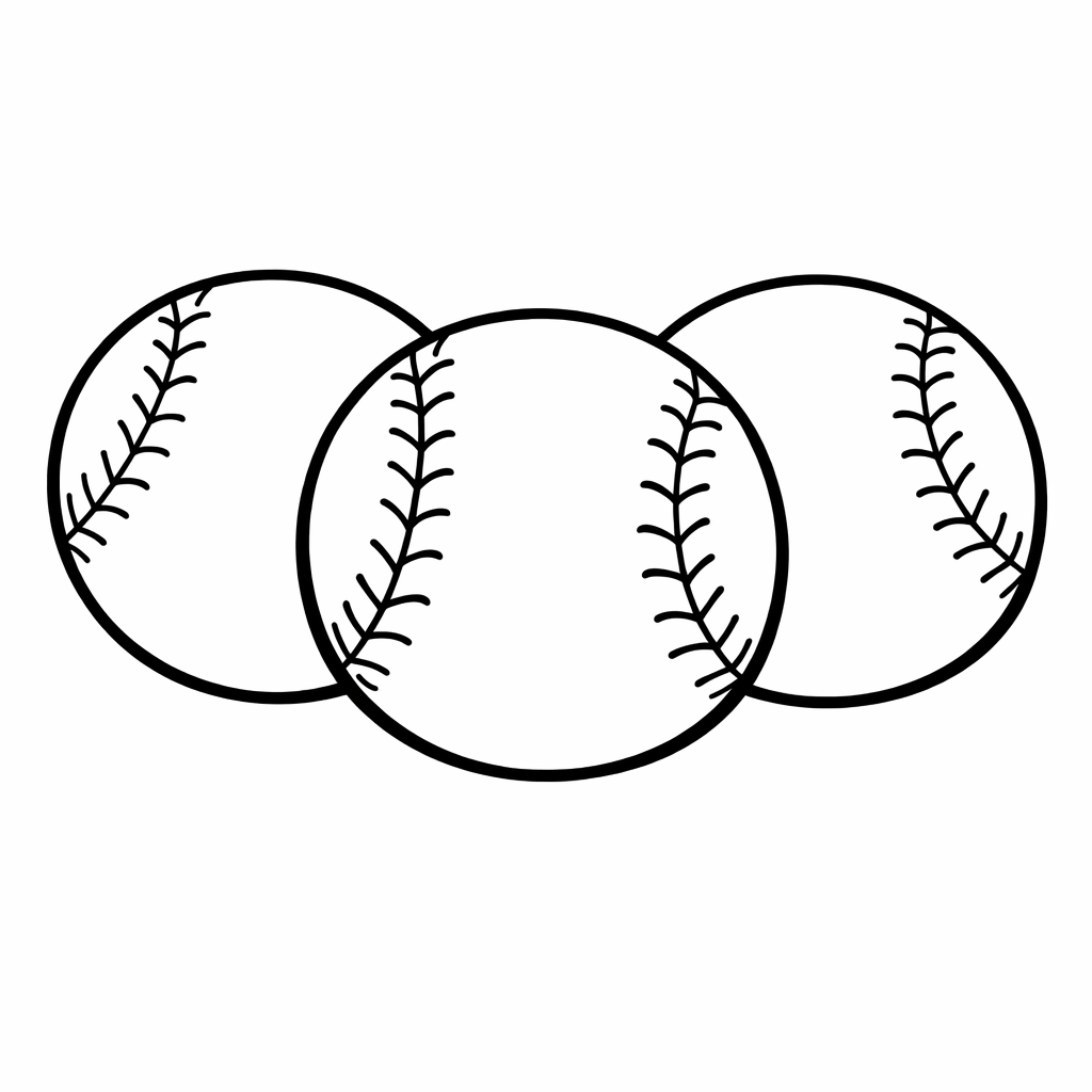 Baseball Coloring Page — Object Only: Two Or Three Baseballs Side By Side, Simple And Adorable, No Background