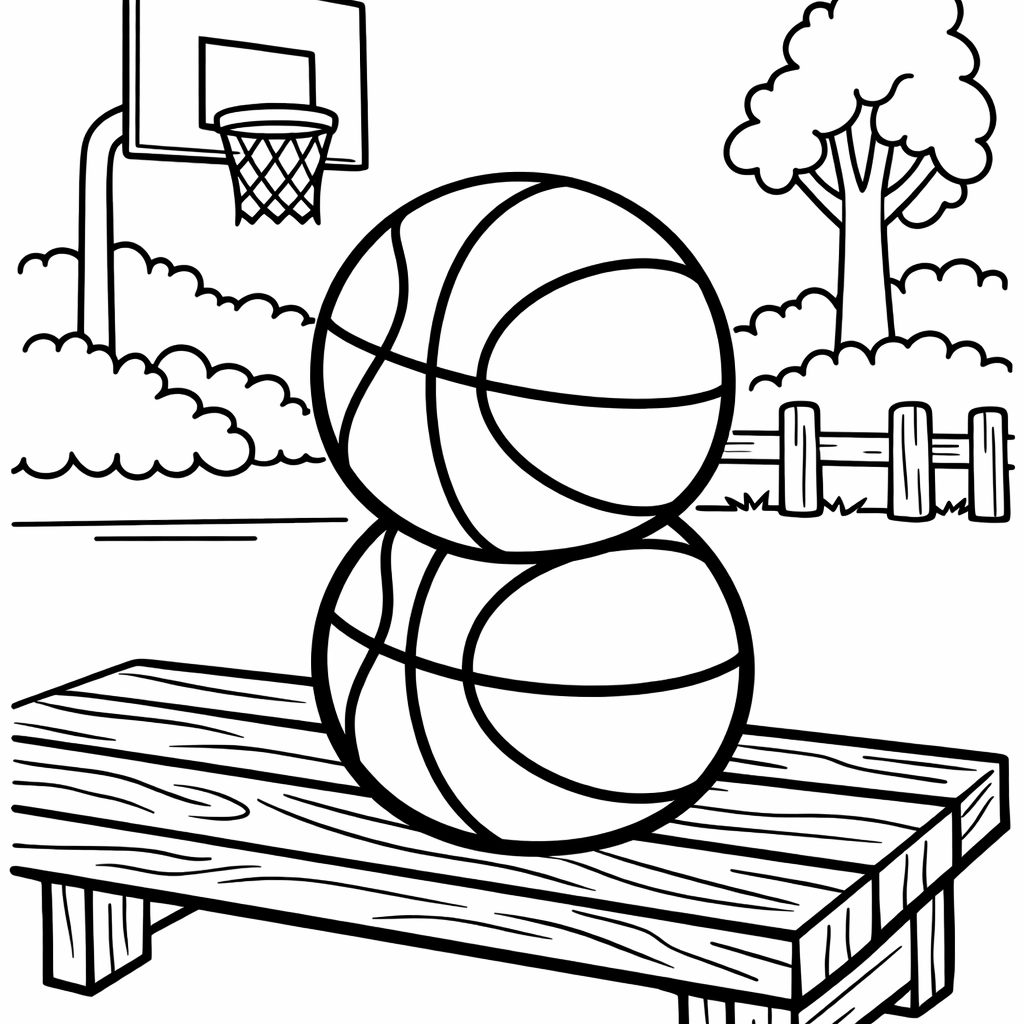 Basketball Coloring Page — Object Only: Two Or Three Basketballs Side By Side, Simple And Adorable, No Background