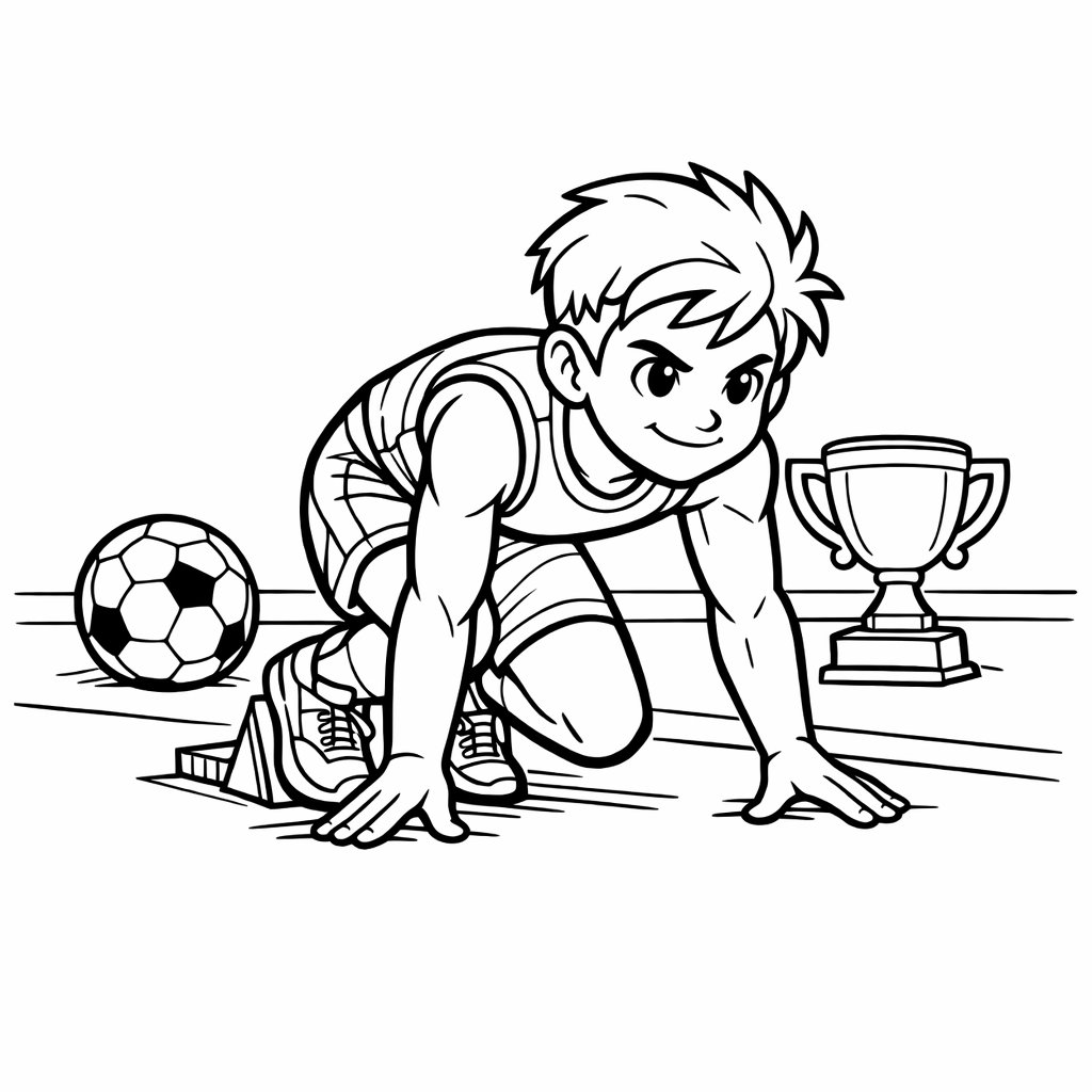 Free printable running coloring page for kids. Runner Starting. Print in one click, Level: advanced.
