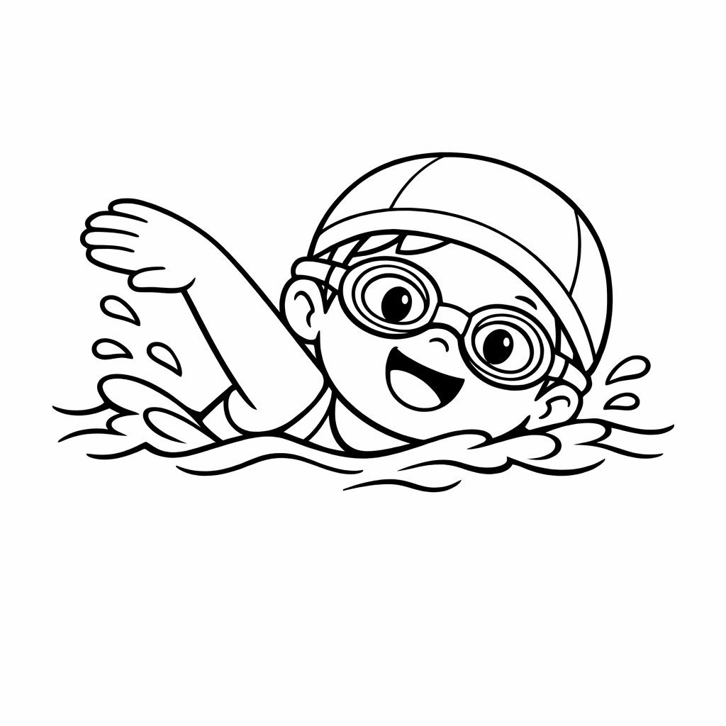 Swimming Coloring Page — Object Only: A Cute Swimming With Clean Outlines, No Background