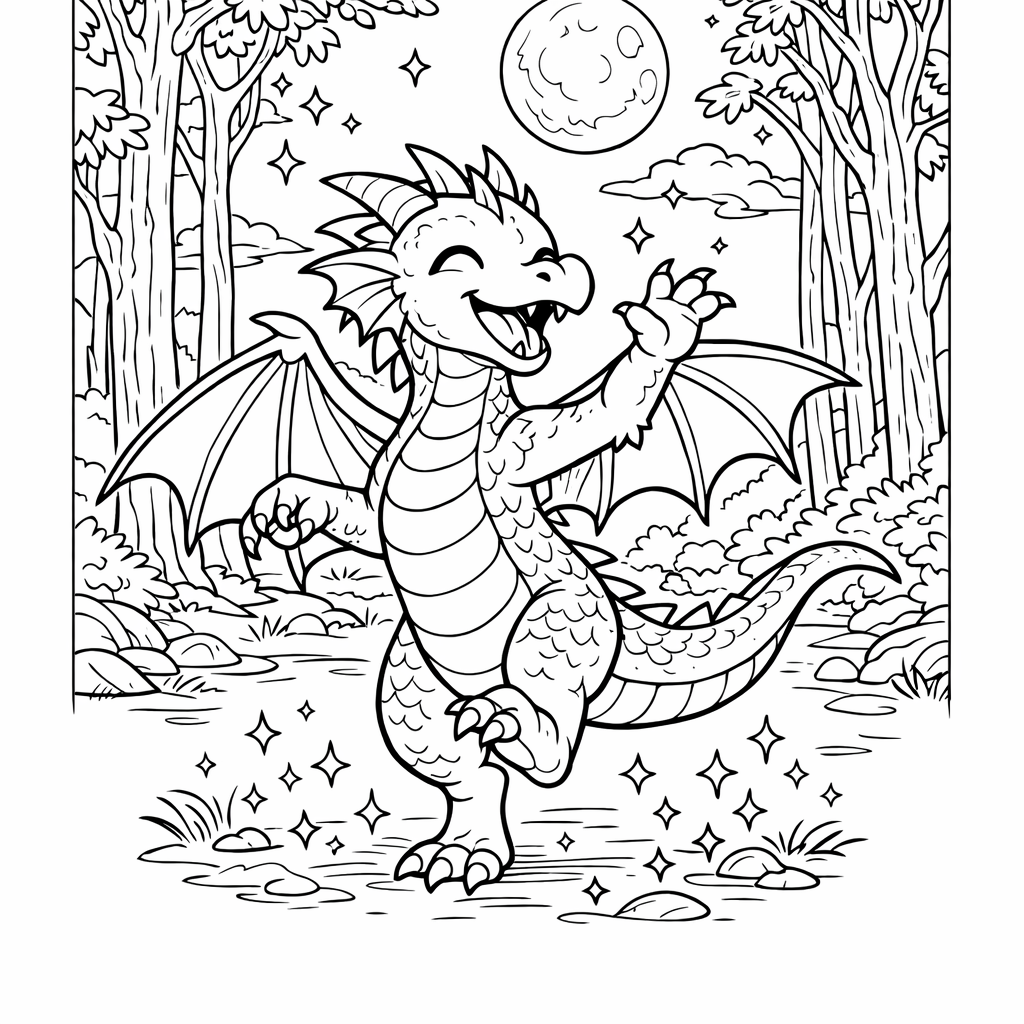 Free printable dragon coloring page for kids. A Dragon Breathing Tiny Sparkles Instead Of Fire. Print in one click, Level: advanced.