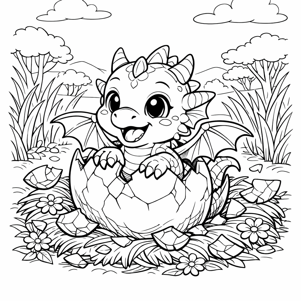 Dragon Coloring Page — A Cute Baby Dragon Hatching From An Egg