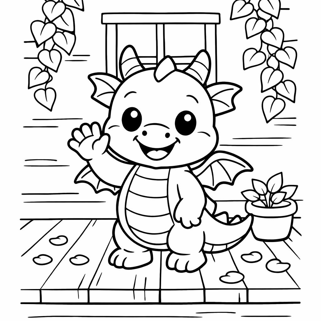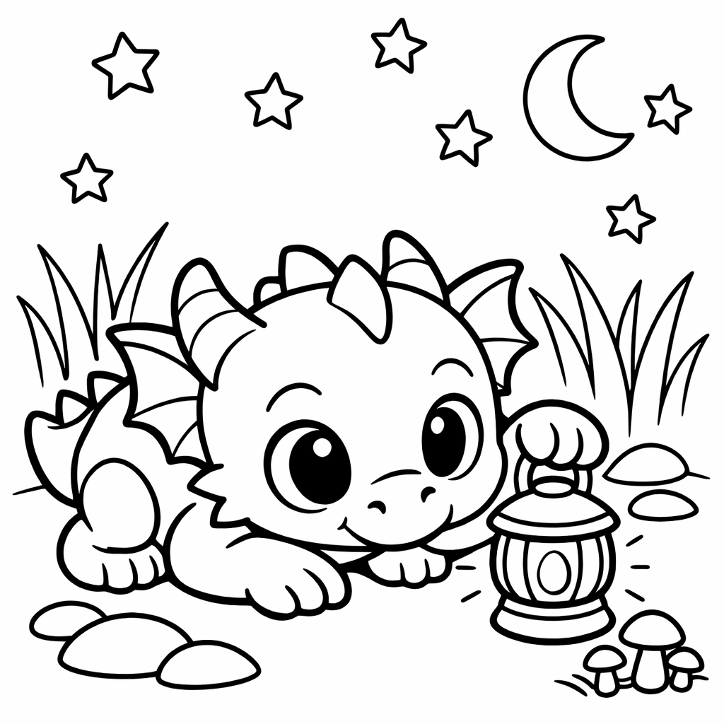 Free printable dragon coloring page for kids. Object Only: A Cute Baby Dragon With Clean Outlines, No Background. Print in one click, Level: beginner.