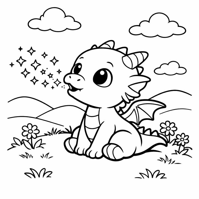 Dragon Coloring Page — A Dragon Breathing Tiny Sparkles Instead Of Fire