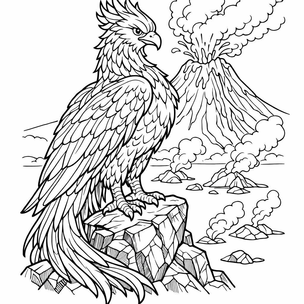 Phoenix Coloring Page — A Baby Phoenix Sitting In A Nest Of Embers