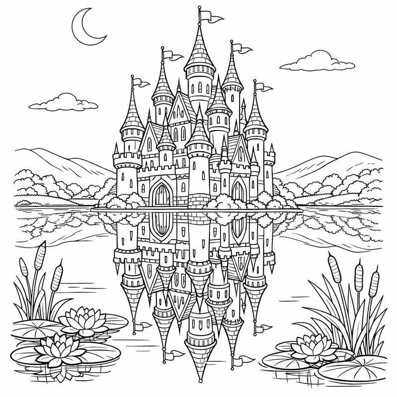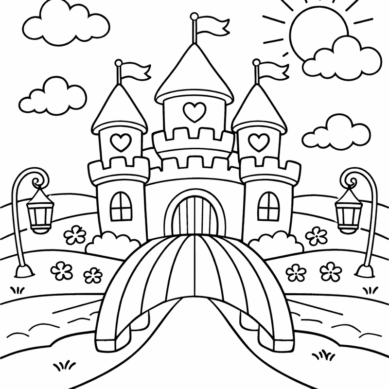 Unicorn Castle Coloring Page — Object Only: A Cute Fairy Tale Castle, No Background