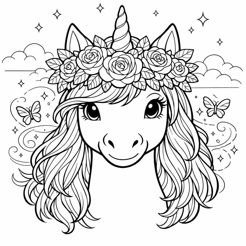 Free printable unicorn head coloring page for kids. Unicorn And Sparkles. Print in one click, Level: advanced.